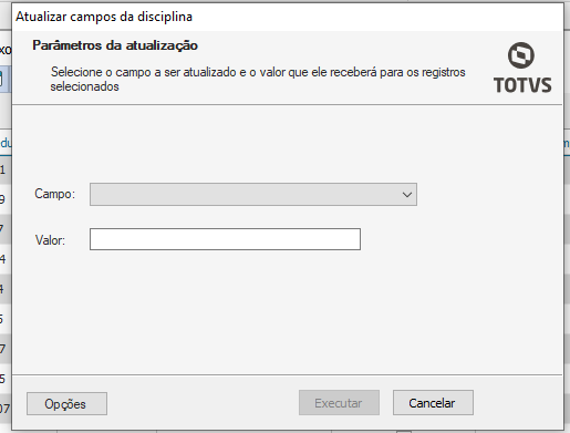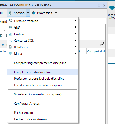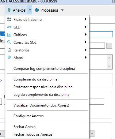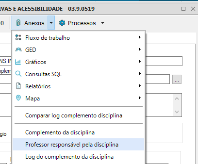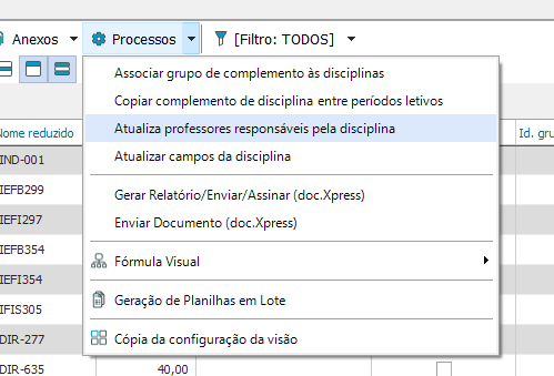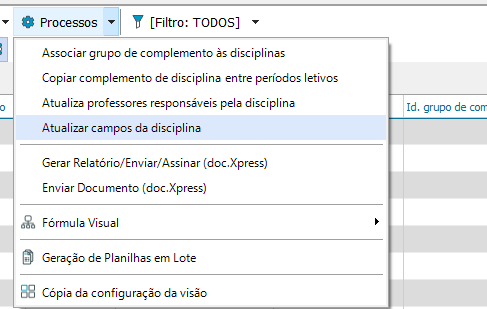 Para atualizar os campos da disciplina, escolha a opção “Processos- Atualizar Campos da Disciplina”