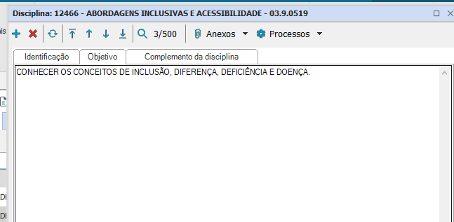 -Escreva o objetivo da disciplina que está sendo cadastrada como foi mostrado a imagem acima