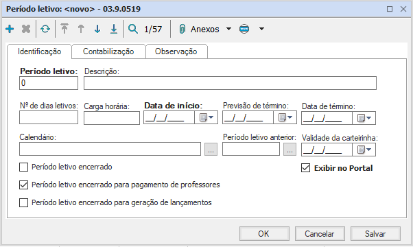 - Habilite o campo “Exibir no Portal” caso seja desejado que as informações referentes ao período letivo apareça no portal;