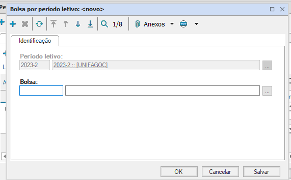 Após selecionar a opção acima, preencha a informações para realizar o vínculo das bolsas no período letivo