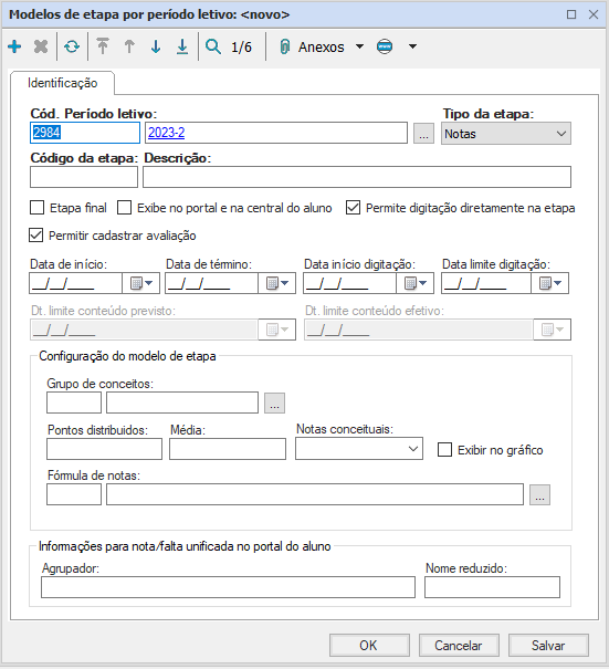 Calendário: vincule o calendário referente ao período letivo que está sendo cadastrado;