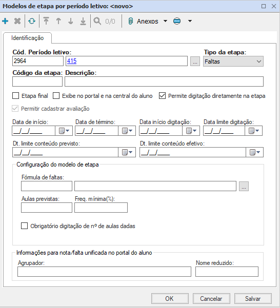 - Habilite os outros campos de acordo com o fechamento do período letivo.