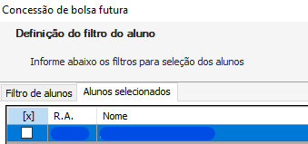Depois de realizar o preenchimento dos dados, selecione a aba “Aluno Selecionados” para visualizar os alunos que irão receber a bolsa futura