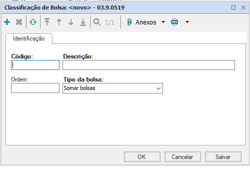 Tipo de bolsa: Selecione o tipo da bolsa destinada a essa classificação.