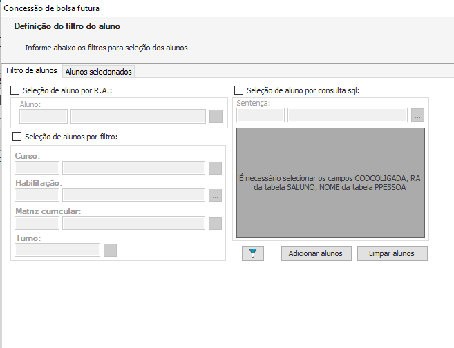 -Seleção de aluno por consulta SQL: filtro criado pela equipe de T.I;