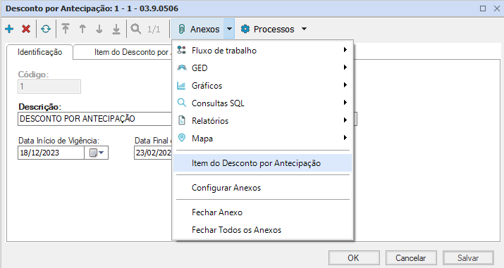 Desconto por antecipação | Aba – Identificação – ANEXOS