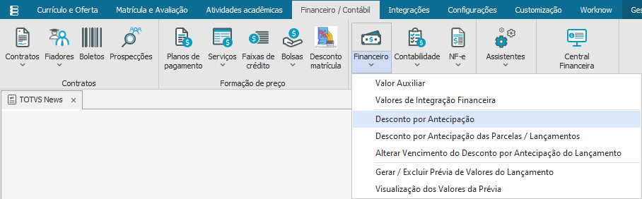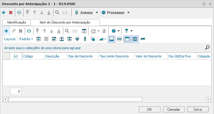 Desconto por antecipação | Aba – Item do Desconto por Antecipação