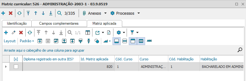 Após abrir a nova aba “Matriz Aplicada” clique duas vezes sobre a matriz para abrir o cadastro