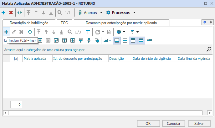 Clique Incluir (+) para vincular o desconto na matriz aplicada