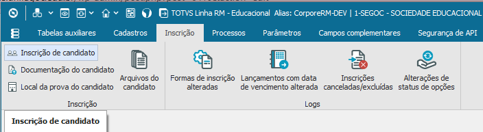 Menu de Inscrição – Lançamentos com data de vencimento alterada