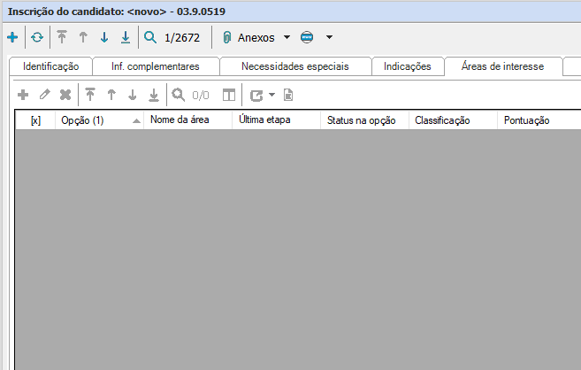Nessa guia serão inseridas ou editadas as opções dos candidatos para uma ou mais áreas de interesse disponíveis no processo seletivo. Para isso, selecione “incluir” e escolha a área de interesse correspondente.