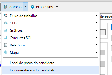Menu de Inscrição- Documentação do Candidato