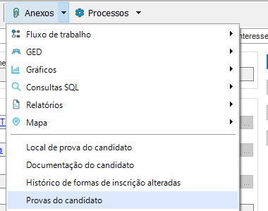 Local onde as provas dos candidatos ficam localizadas. Para realizar a visualização da prova, Inscrição de candidato- Anexos – Provas do candidato