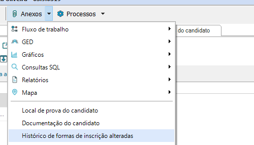 Inscrição de Candidato, selecione o(s) candidato(s) – Processos – Alterar forma de inscrição do candidato