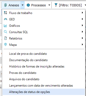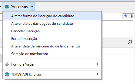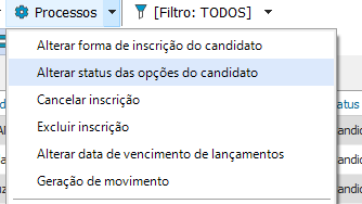 Selecione o(s) candidato(s) e em seguida, escolha a opção Processos- Alterar status das Opções do Candidato