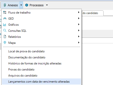Inscrição de Candidato, selecione o(s) candidato(s) – Processos – Alterar data de vencimento de lançamentos