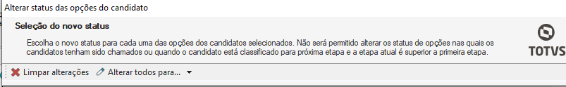 Selecione o novo status para cada candidato mencionado.
