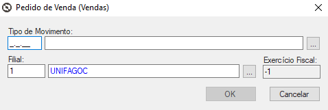 Informe o “Tipo de movimento” e a “Filial” para esse pedido de venda