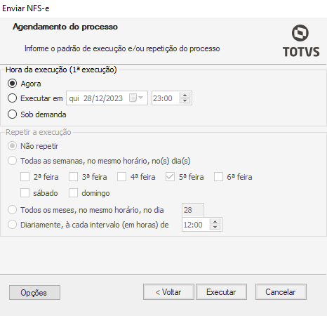 – Agora: Sendo selecionado este a execução acontecerá assim que você finalizar esse processo.