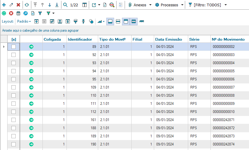 Após selecionar “OK” irá abrir uma página exibindo os movimentos já criados