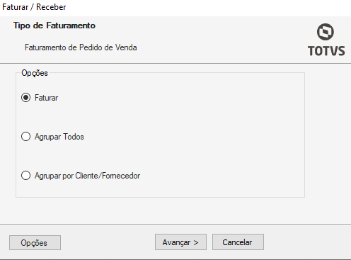 Em seguida, selecione a opção “Faturar” na aba “Tipo de Faturamento”