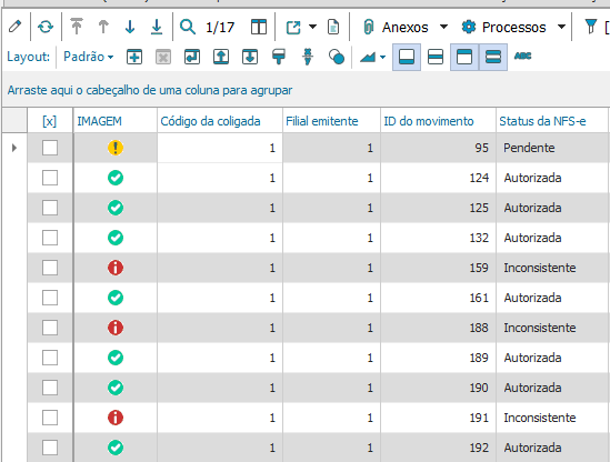 Logo então mostrará o Status da NFS-e podendo ser: Cancelada, Autorizada, Rejeitada, Inconsistente ou Pendente