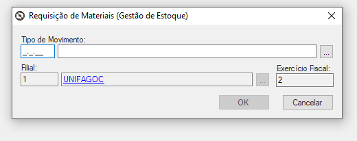 Depois de realizar o preenchimento das informações clique em “OK” para concluir o processo de requisição de materiais