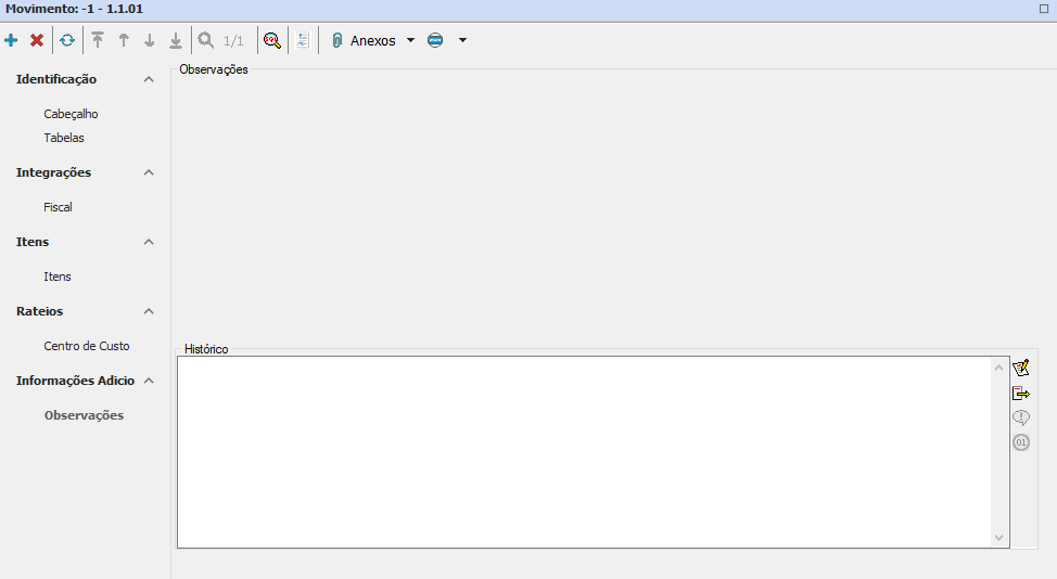 Aba onde deverá ser informada as observações e o histórico referente as informações adicionais