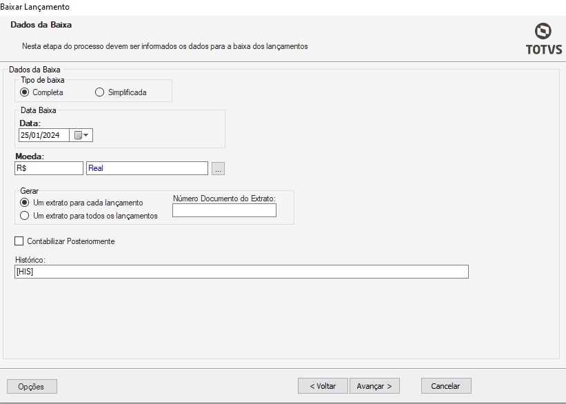 Baixa de Lançamento Completo
