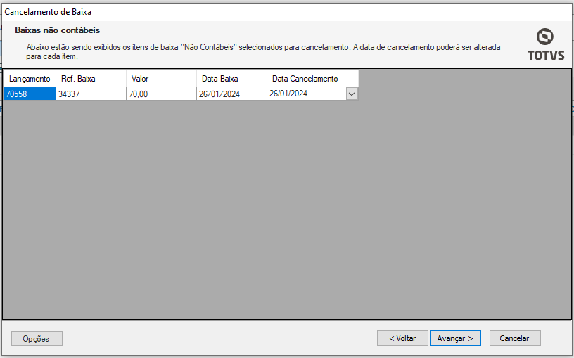 Cancelamento de Baixa | Aba – Baixa não contábeis