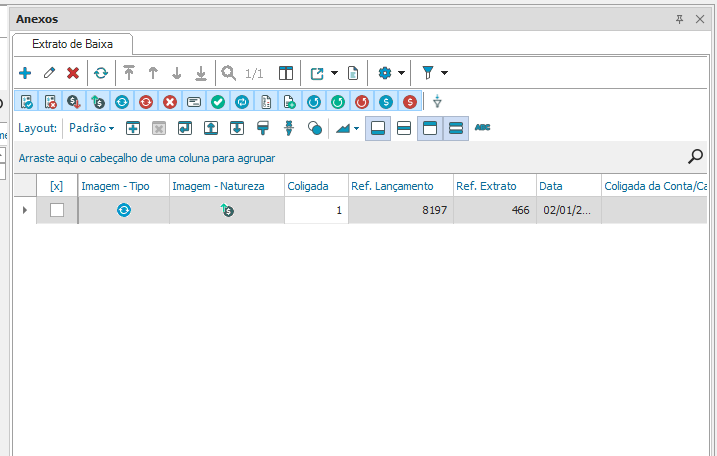 Após abrir essa opção poderão ser visualizados os extratos de baixa do lançamento selecionado