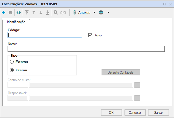 Tipo: informe se a localização que está sendo cadastrada é interna ou externa;