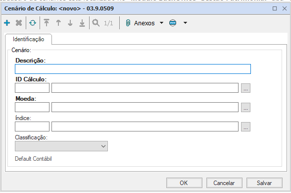 Descrição: informe o nome do cenário que está sendo cadastrado;