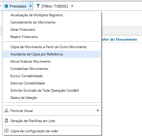 Depois de selecionar a opção acima, escolha “Processos- Assistente por Cópia de Referência”