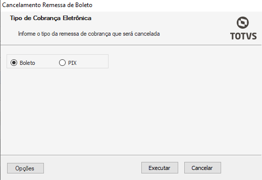 Nessa aba deverá ser informada o tipo da cobrança que será cancelada
