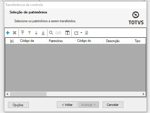 Depois de selecionar a opção acima, escolha os patrimônios que serão transferidos clicando em “incluir”
