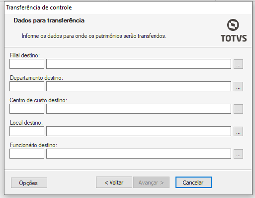 Centro de Custo Destino: informe o centro de custo irá receber o bem patrimonial;
