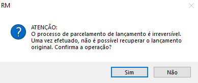 Observação: Confirme se deseja realmente fazer o parcelamento, pois esse processo é irreversível