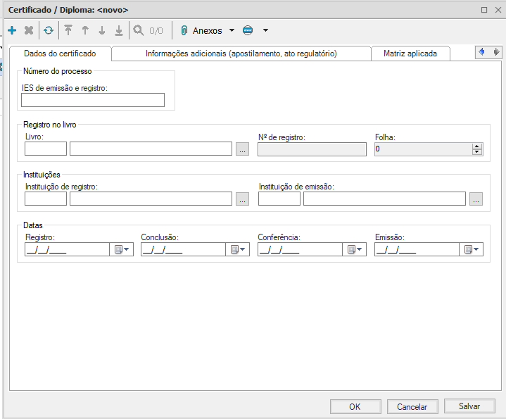 Situação da Certificação: selecione o status da certificação que está sendo cadastrada;