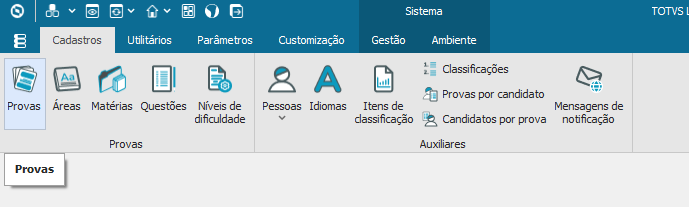 O processo de criação da avaliação institucional inicia no “Módulo Educacional- Avaliação e Pesquisa” opção “Provas”