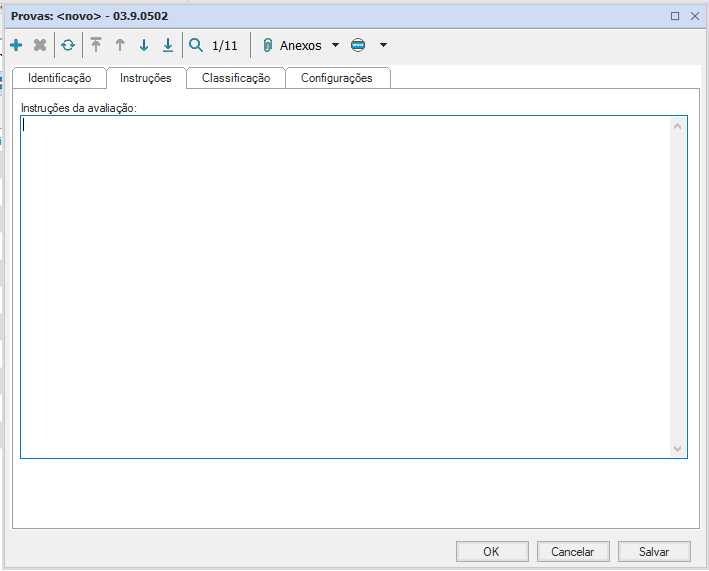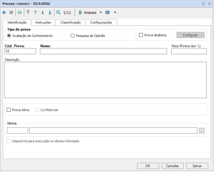 Nome: informe o nome da prova que está sendo criada;