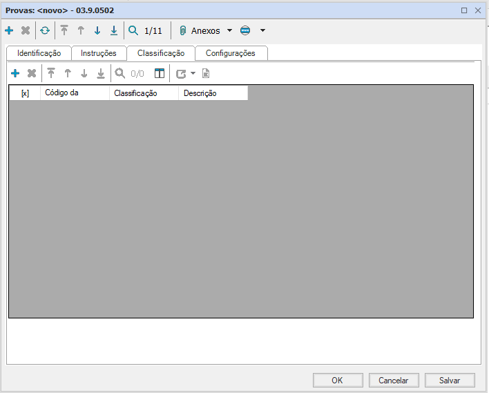 A aba classificação não deverá ser preenchida
