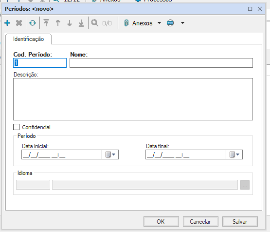 Nome: informe o nome do período;