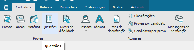 Para realizar a criação das questões da avaliação institucional é necessário escolher a opção “Questões” na aba “Cadastros”