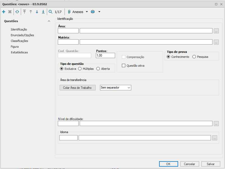 Área: selecione a área da questão;