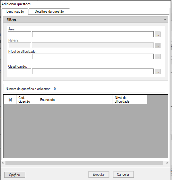 Depois de informar selecione as questões que deverão ser vinculadas e clique em “Executar”