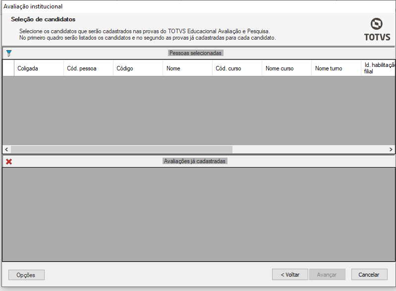 Crie o filtro de acordo com o definido na tela anterior para realizar a vinculação dos candidatos e clique em “avançar”
