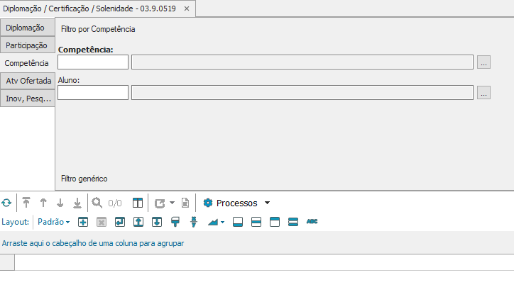 Na geração de certificado de competência adquirida deverá ser preenchido somente os campos competência e aluno