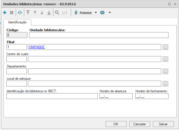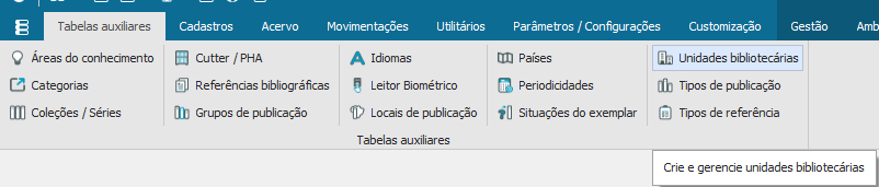 Unidade Bibliotecária: informe o nome da biblioteca que está sendo cadastrada;