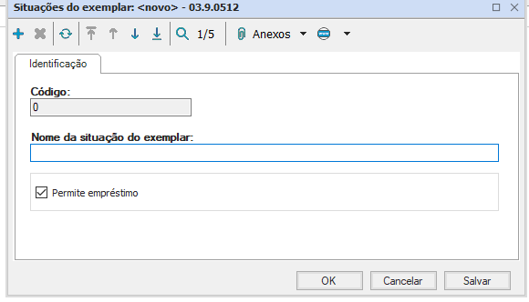 Nome da situação do exemplar: informe o nome da situação que está sendo cadastrada;